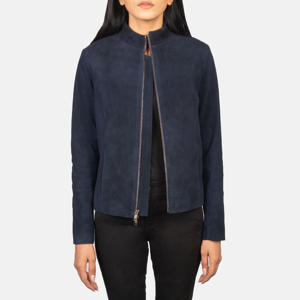Kelsee Navy Blue Suede Biker Jacket - Leather Clan