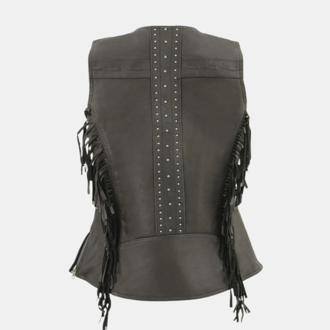 Cindy Womens Black Leather Biker Vest