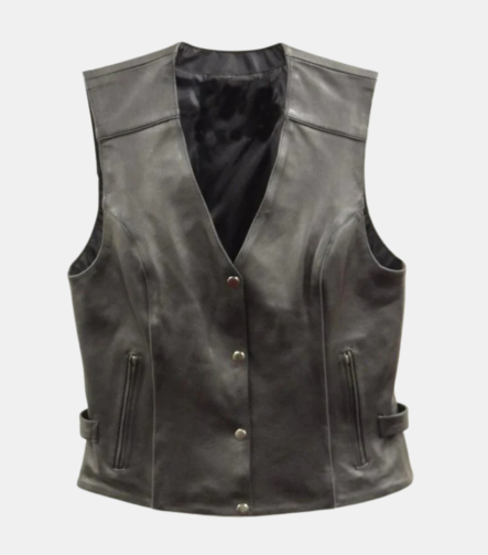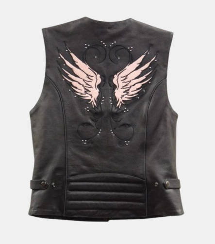 Black and Pink Studded Leather Vest