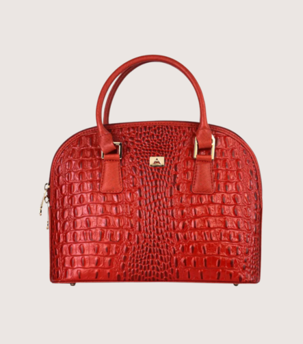 Red Noir Croc Leather Handbag