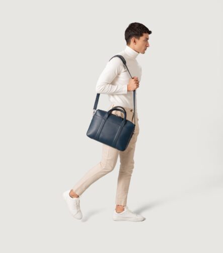 The Captain Midnight Blue Leather Briefcase