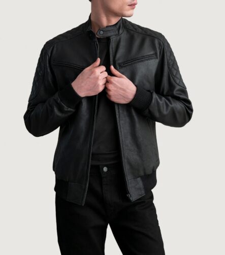 Sven Black Leather Bomber Jacket