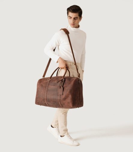 The Darrio Vintage Distressed Brown Leather Duffle Bag