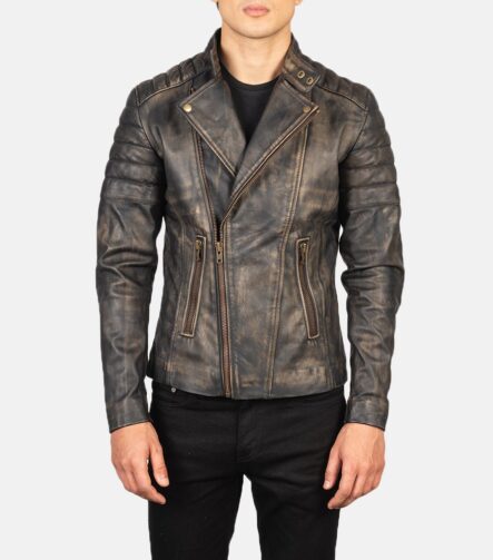 Hector Vintage Brown Hooded Leather Biker Jacket