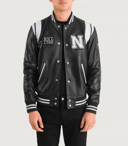 Liberte New York Black Leather Varsity Jacket