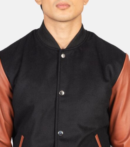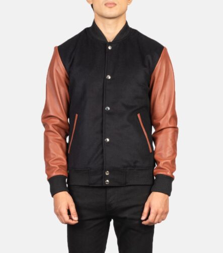 Vaxton Brown & Black Hybrid Varsity Jacket