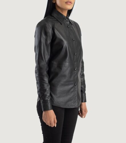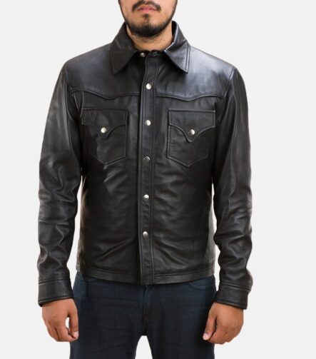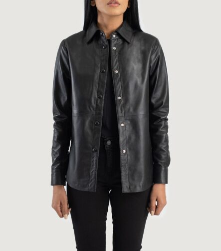 Zenith Black Leather Shirt Jacket