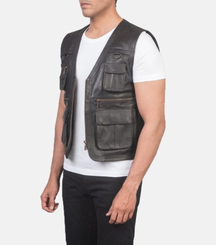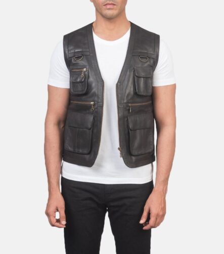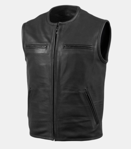 Men’s Black Premium Leather Vest – Club Style Vest!