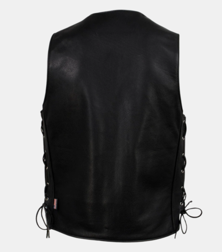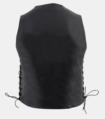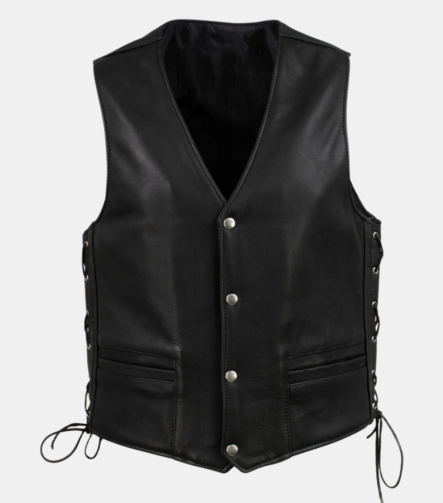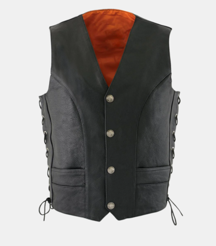 Men’s Black Motorcycle Leather Vest – Buster Side Lace
