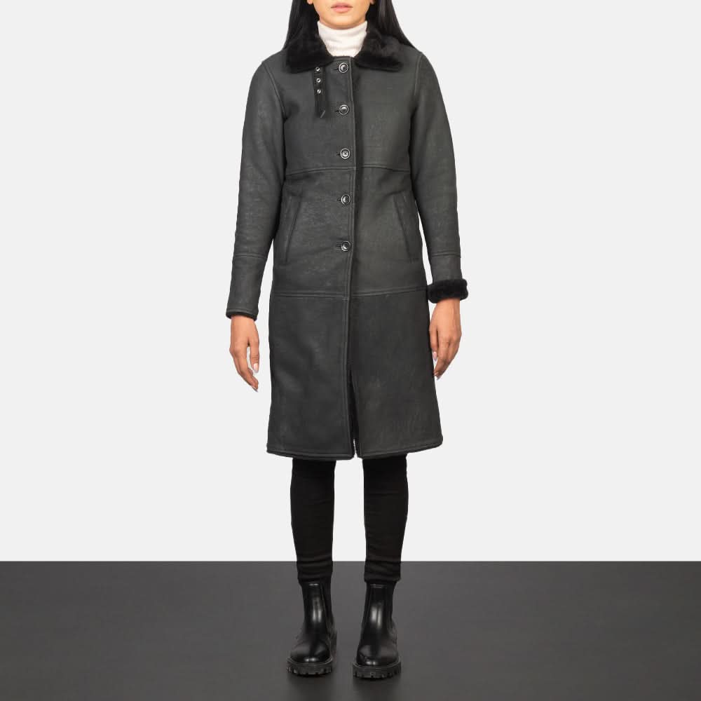 Alina Shearling Black Leather Coat