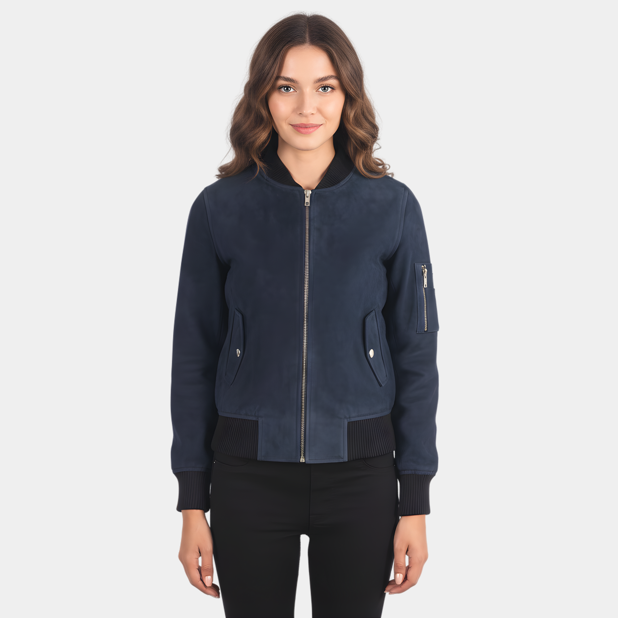Ava Ma-1 Blue Suede Bomber Jacket