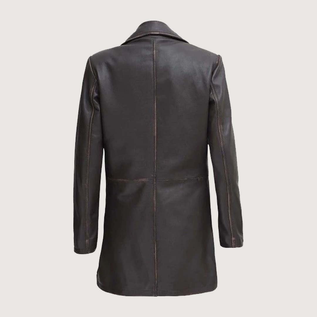Style: Women’s Distressed Dark Brown Leather Car Coat