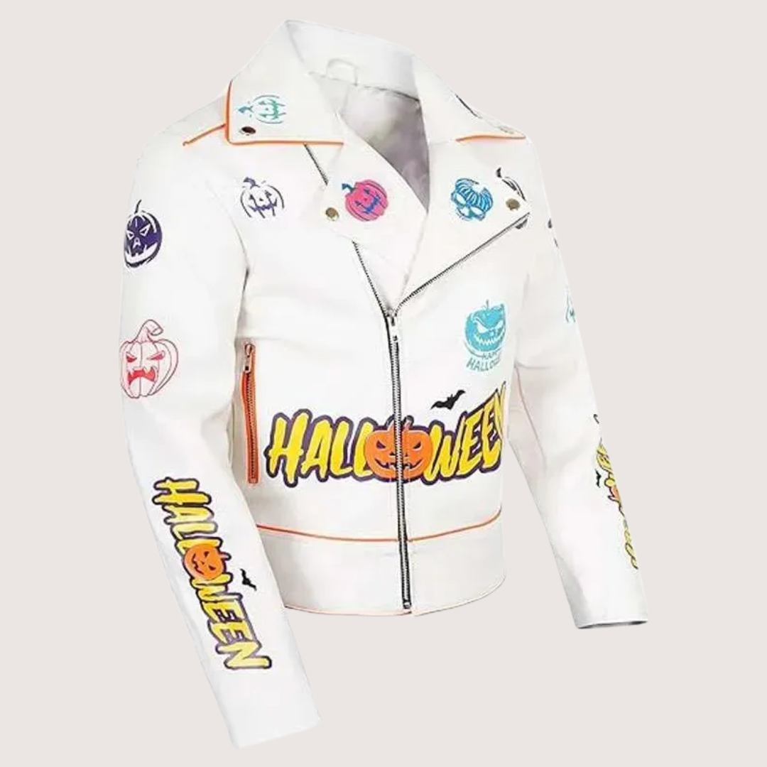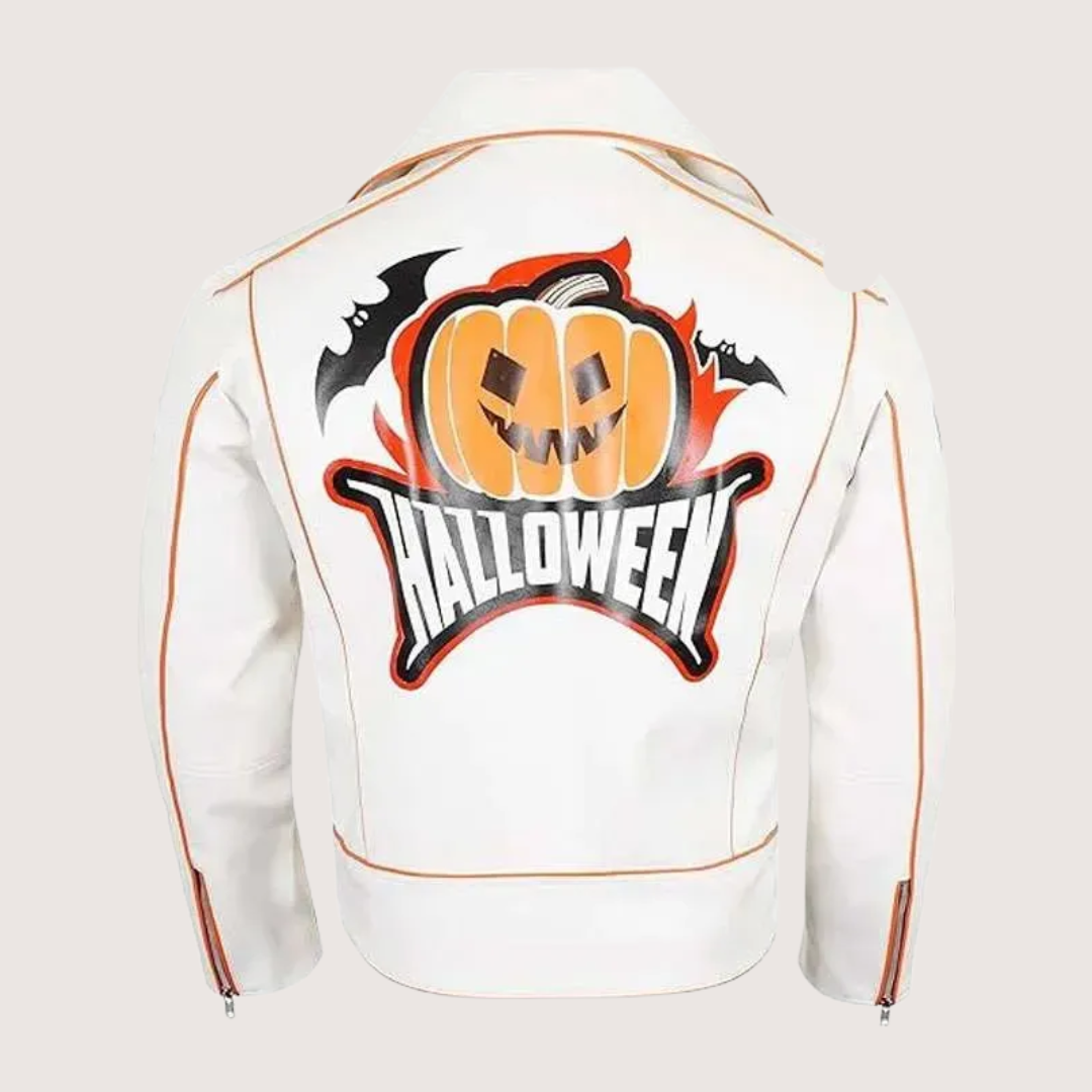 Halloween White Leather Biker Jacket
