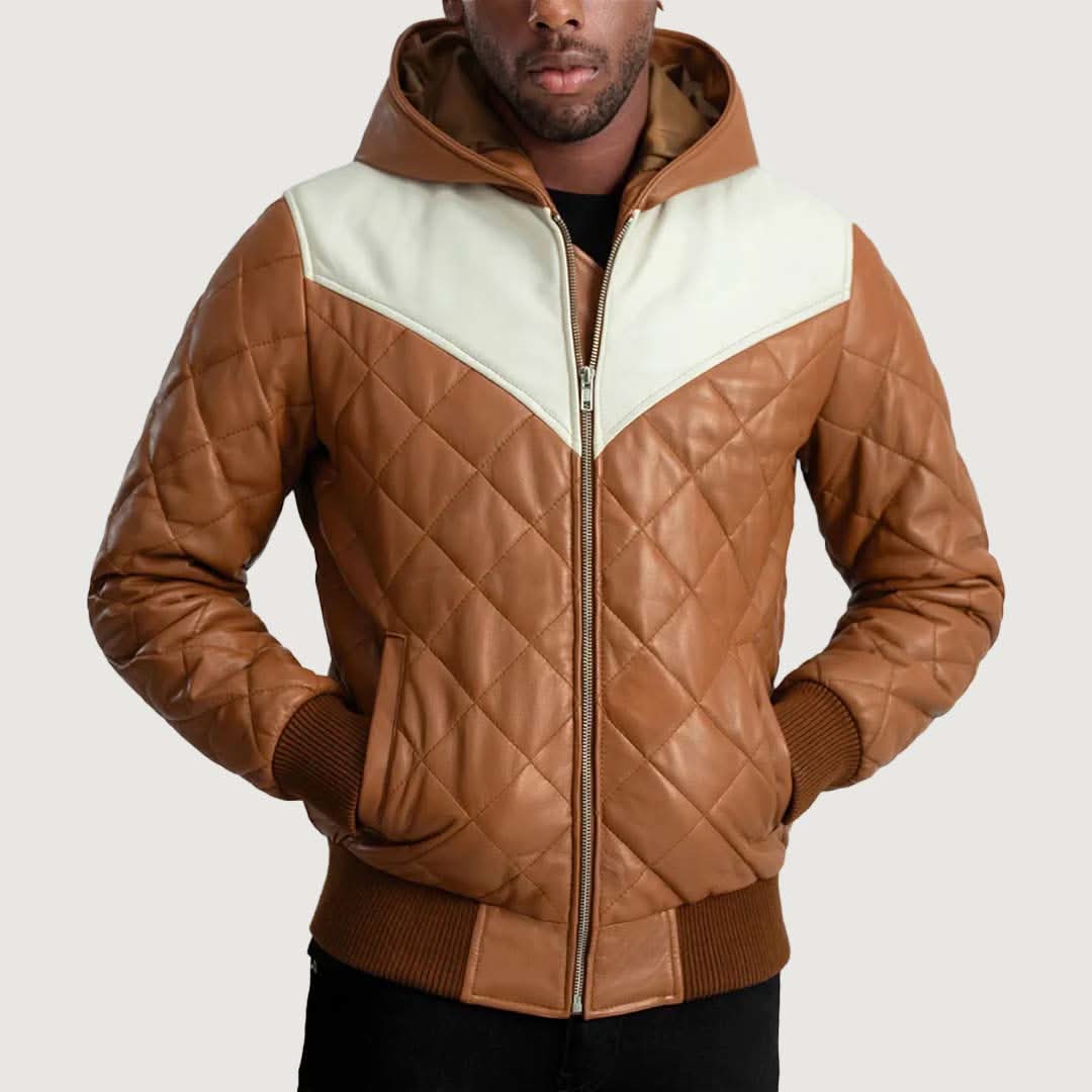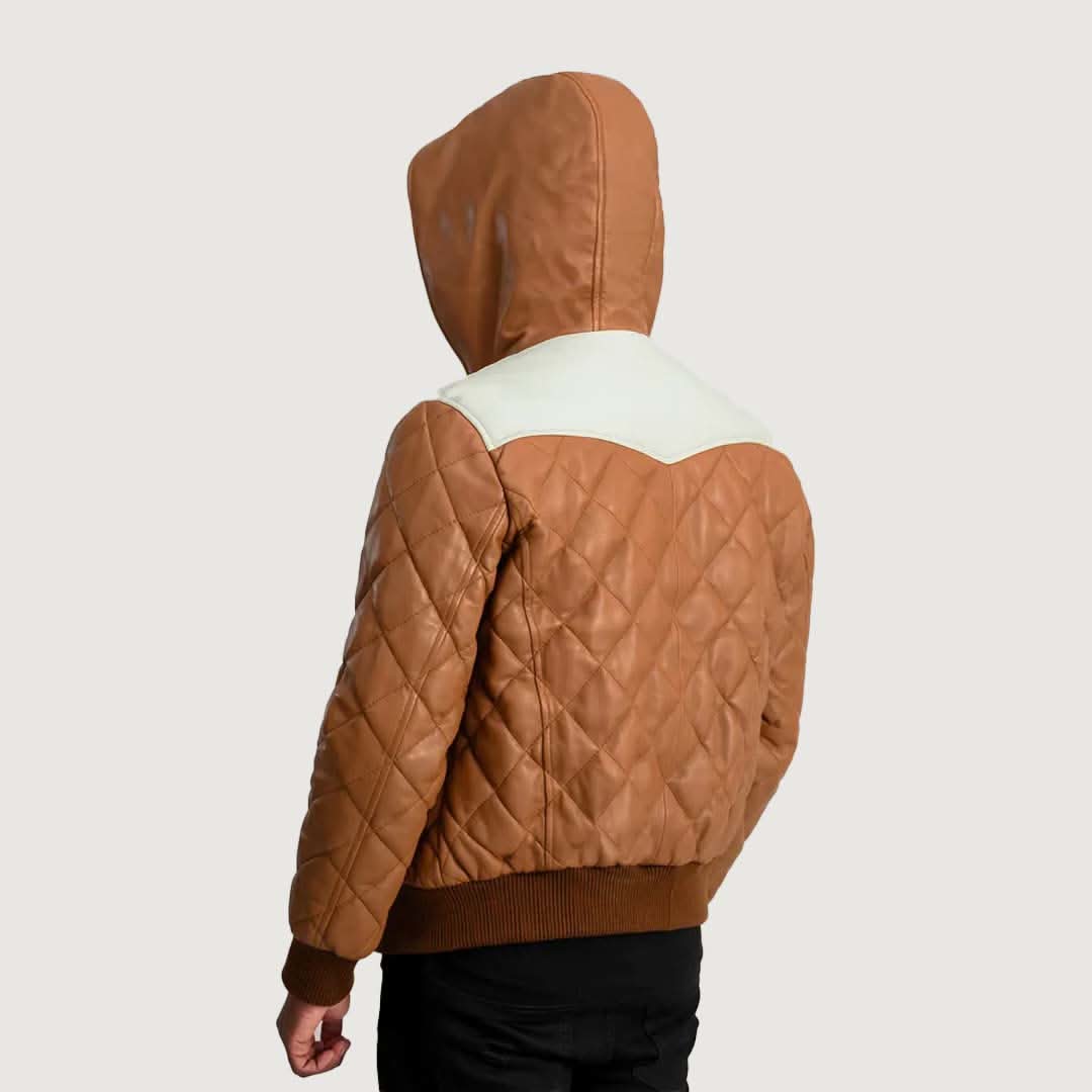 Norman Tan Hooded Bomber Leather Puffer Jacket