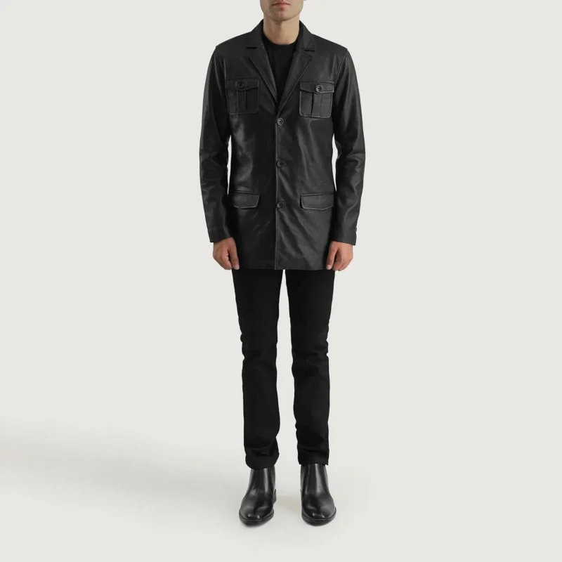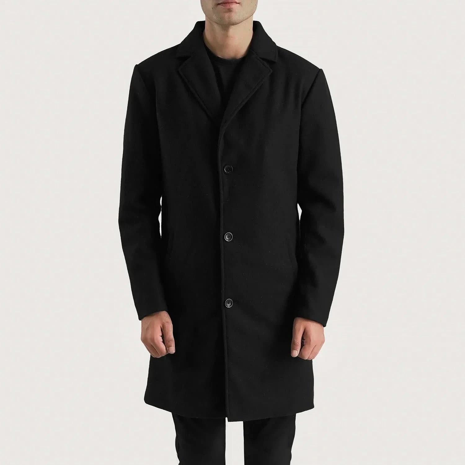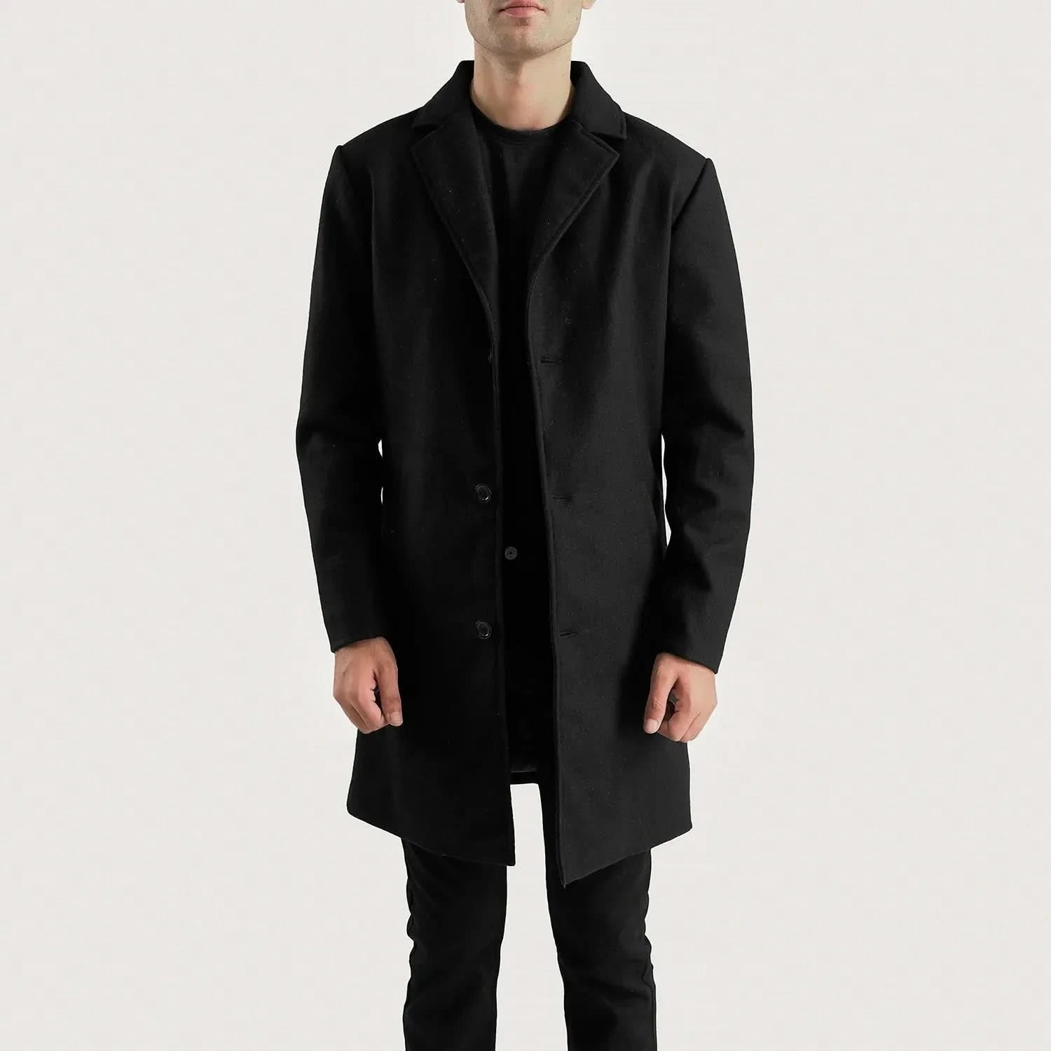 Petrillo Black Wool Single Breasted Coat