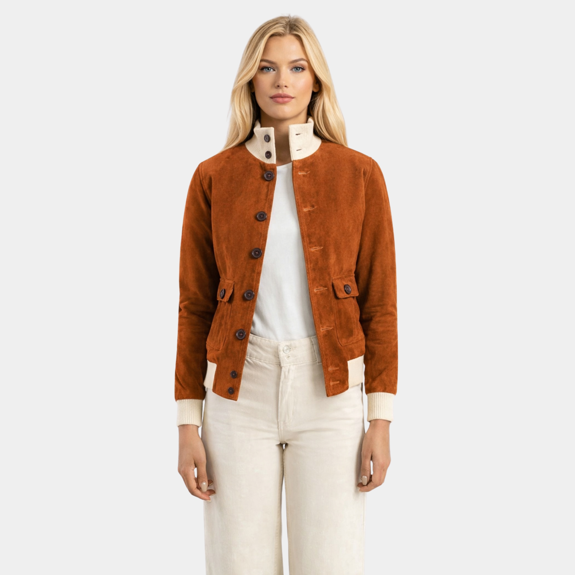 Sasha A1 Brown Suede Bomber Jacket
