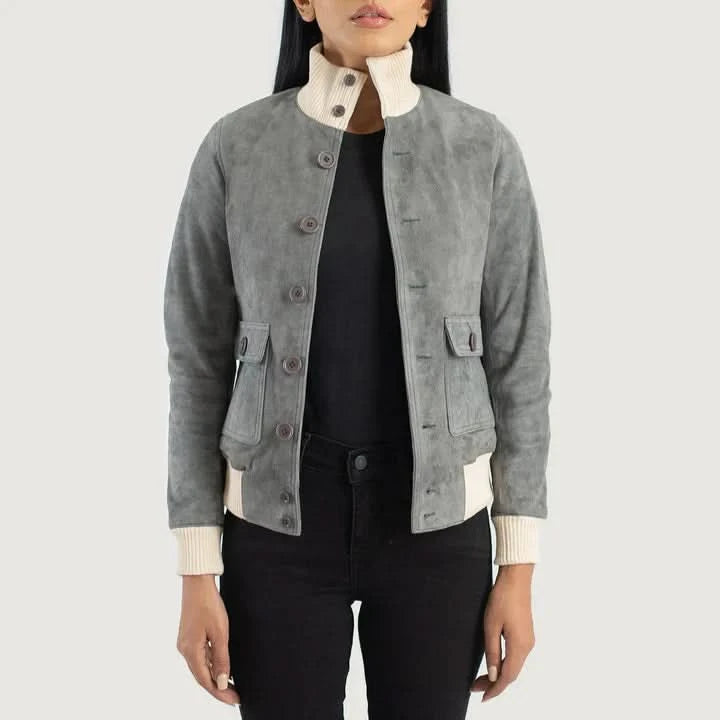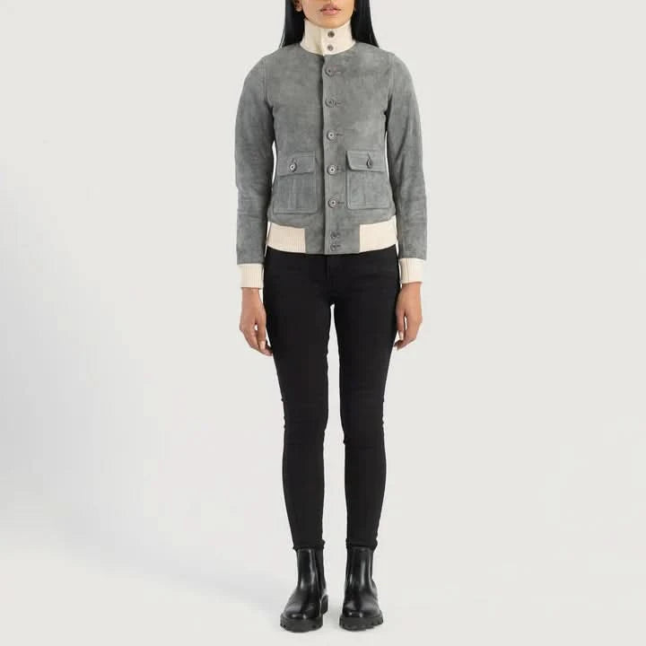 Sasha A1 Grey Suede Bomber Jacket