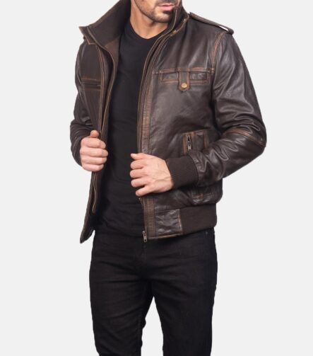 [FS] Aaron Brown Leather Bomber Jacket