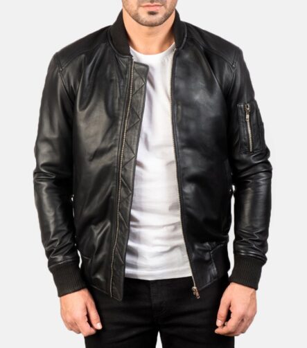 [FS] Bomia Ma-1 Black Leather Bomber Jacket